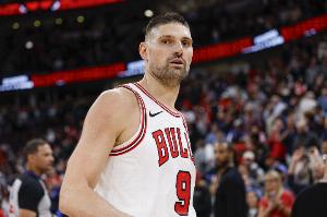 上半場(chǎng),公牛中鋒武切維奇出場(chǎng)15分鐘9投4中,三分3中1拿到9分3籃板1助攻,正負(fù)值-11最低。