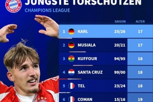 體育資訊10月23日訊 歐冠聯(lián)賽階段第三輪比賽,倫納特-卡爾破門,拜仁主場4-0擊敗布魯日。據德國轉會市場統(tǒng)計,倫納特-卡爾是拜仁隊史最年輕歐冠進球者,也是歐冠進球最年輕的德國球員。