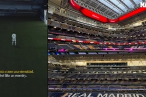 這則宣傳片拍攝于伯納烏球場(chǎng)可伸縮草坪的空間,一線(xiàn)隊(duì)球員貝林厄姆、迪亞斯、阿諾德和馬斯坦托諾出鏡,穿梭于充滿(mǎn)未來(lái)感和金屬質(zhì)感的黑暗場(chǎng)景中,象征著俱樂(lè)部神話(huà)起源于此,歷史在此搏動(dòng)。視頻旁白采用了“神秘而雄心勃勃”的語(yǔ)言,如“偉大要求一切。它從不隱藏。它每天早晨都會(huì)奮起”,并結(jié)合新伯納烏可伸縮頂棚的畫(huà)面,配以“像太陽(yáng)一樣不知疲倦”的臺(tái)詞。